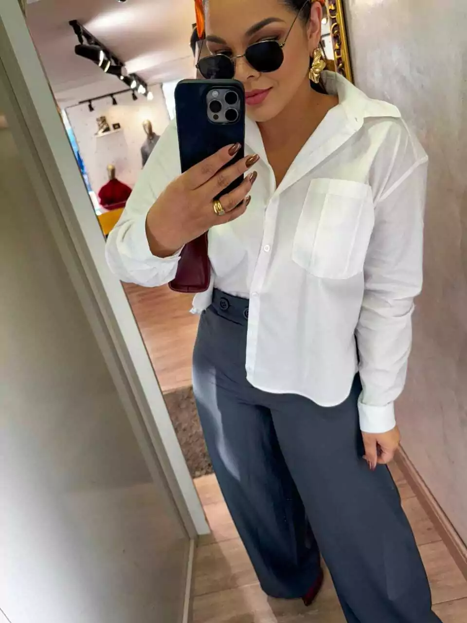 A camisa social com manga longa é confeccionada em polialgodão, um tecido leve, que proporciona conforto e um melhor caimento, além de uma maior durabilidade e facilidade para a manutenção, proporcionados pelo equilíbrio entre a composição e o peso do tecido, sendo uma excelente escolha para o uso na uniformização.
